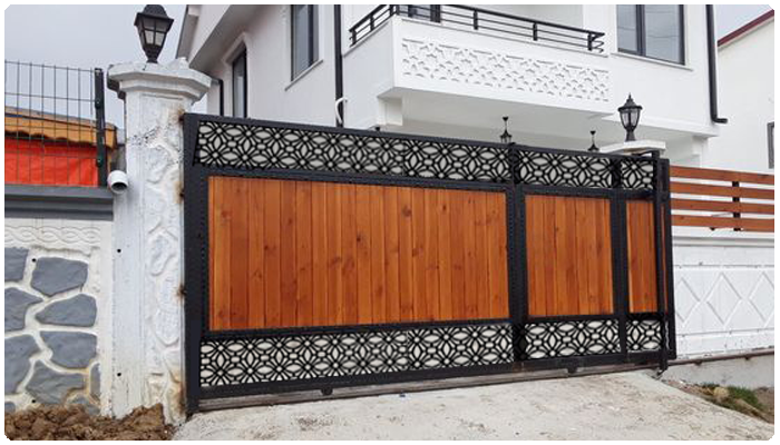 ประตูอลูมิเนียมลายไม้ผสมสแตนเลสฉลุลาย